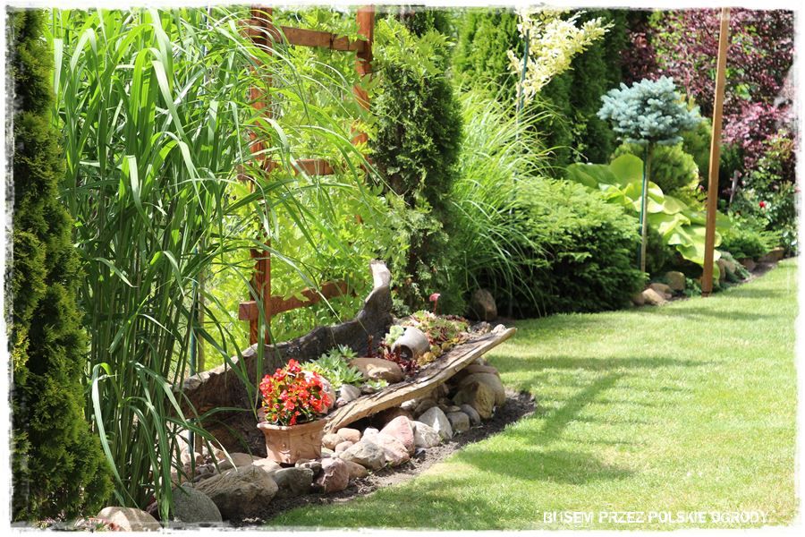 Jak już nadmieniłem, przede wszystkim to, że do aranżacji ogrodów można wykorzystać dosłownie wszystko. Ważne aby mieć pomysł i z gustem wpasować to w ogólny styl ogrodu.