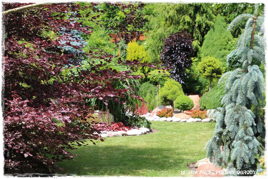 Natomiast na sam koniec wspomnę raz jeszcze o rzeczy najistotniejszej. Ogród Sabiny i Przemka to niezwykłe bogactwo roślin, ale co ważne, w wielu oryginalnych odmianach. Jak chociażby buk ‘Tricolor’,