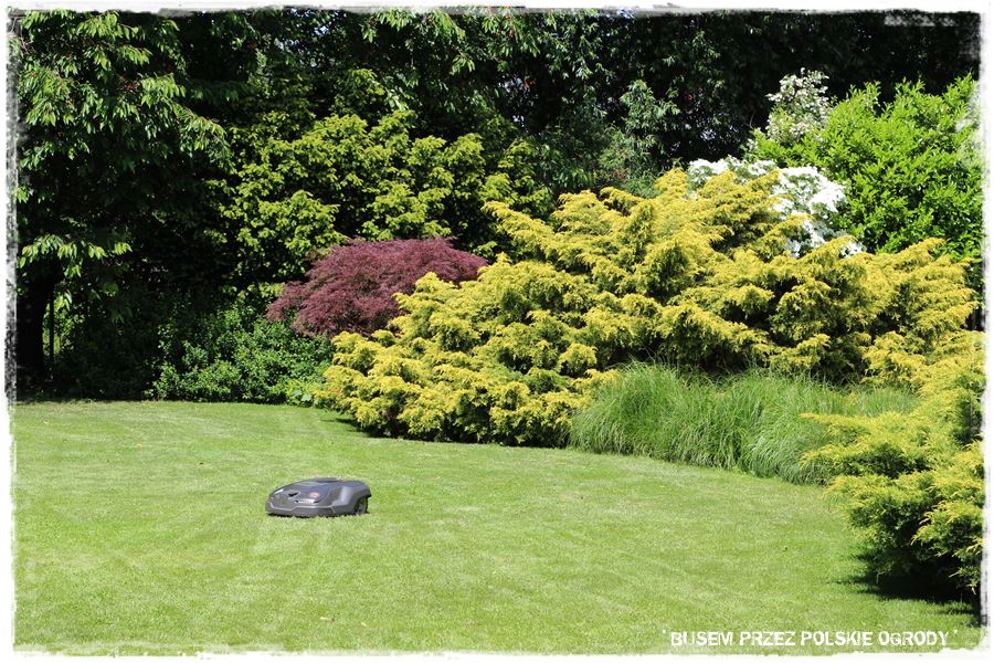 Natomiast sam ogród to kolejny idealny przykład, że ogrody mogą zaskakiwać, można mieć w nich wszystko, co się tylko zamarzy. Oczywiście pewne rzeczy są kwestią określonego budżetu, jednak wcześniej musi być pomysł i chęć działania. Jak widziałeś zachwycają tu stawy, piękne obsadzenie, ciekawy pomysł na aranżację terenu, a nawet trawnik i altana ze strzechą. Wszystko to budzi moje wielkie uznanie dla Właścicieli, za wielką pracę i serce do ogrodu.