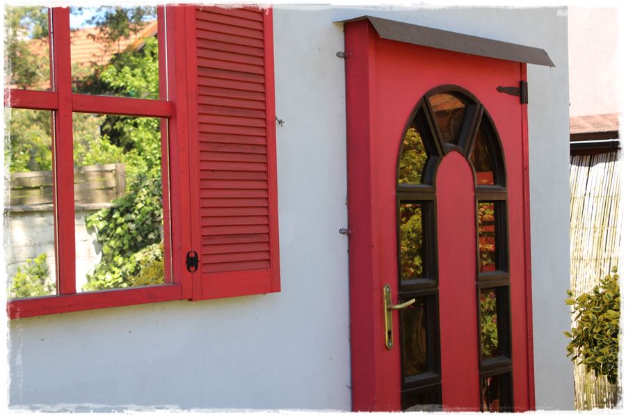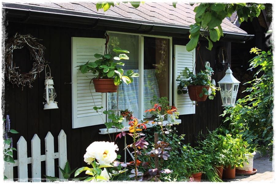 Spójrz więc na poniższe przykłady, które udało mi się „wynieść” z ogrodów. Wszystkie pokazują ozdobne okiennice, do tego jeszcze w kolorowym wydaniu.