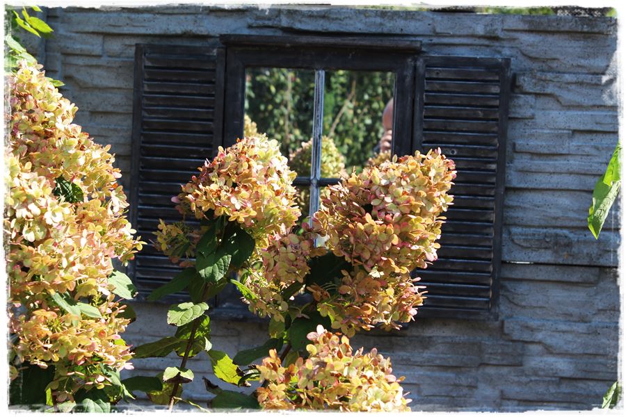 Pod warunkiem jednak, że są pomysłowo zrobione i ciekawie wkomponowane. Podróżując po ogrodach, zarówno tych, w których pracuję, jak i tych, które odwiedzam w ramach projektu „Busem przez polskie ogrody”, mam okazję podpatrywać szereg ciekawych rozwiązań i pomysłów. Również tych związanych z tematem, czyli „okiennice ozdobne jako efektowna ozdoba ogrodu”.