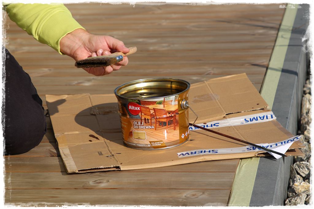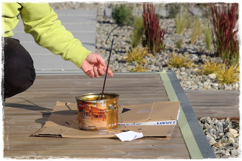 Czynności oczywiste, jako że deski przed impregnowaniem, a później olejowaniem, muszą być czyste i pozbawione kurzu.