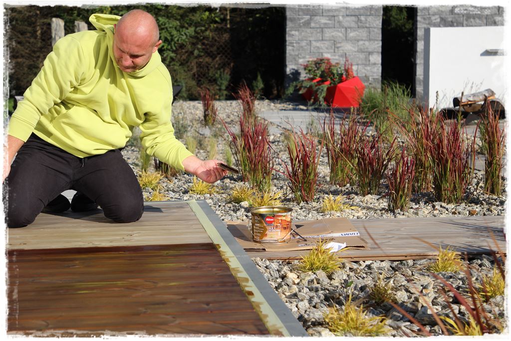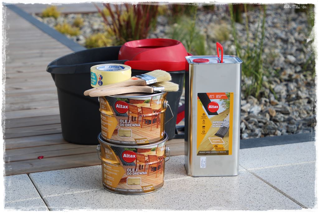 I od razu dodam, że to sprawa niezwykle istotna. Co prawda zastosowane przeze mnie drewno Thermory tego nie wymaga, ale jednak co olej, to olej. Zawsze dodatkowo natłuszcza i zabezpiecza, a ponadto wzmacnia kolor i strukturę drewna.