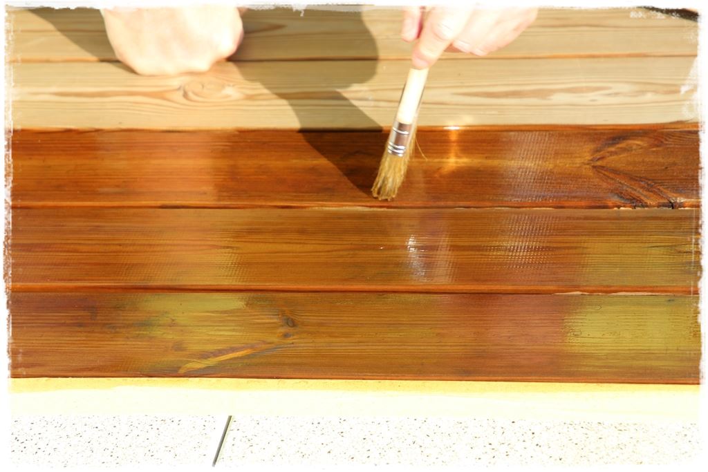 Zastosowałem bezbarwny impregnat gruntujący, który nie zmienia koloru drewna oraz nie tworzy powłoki i może być stosowane pod wszystkie produkty do drewna.