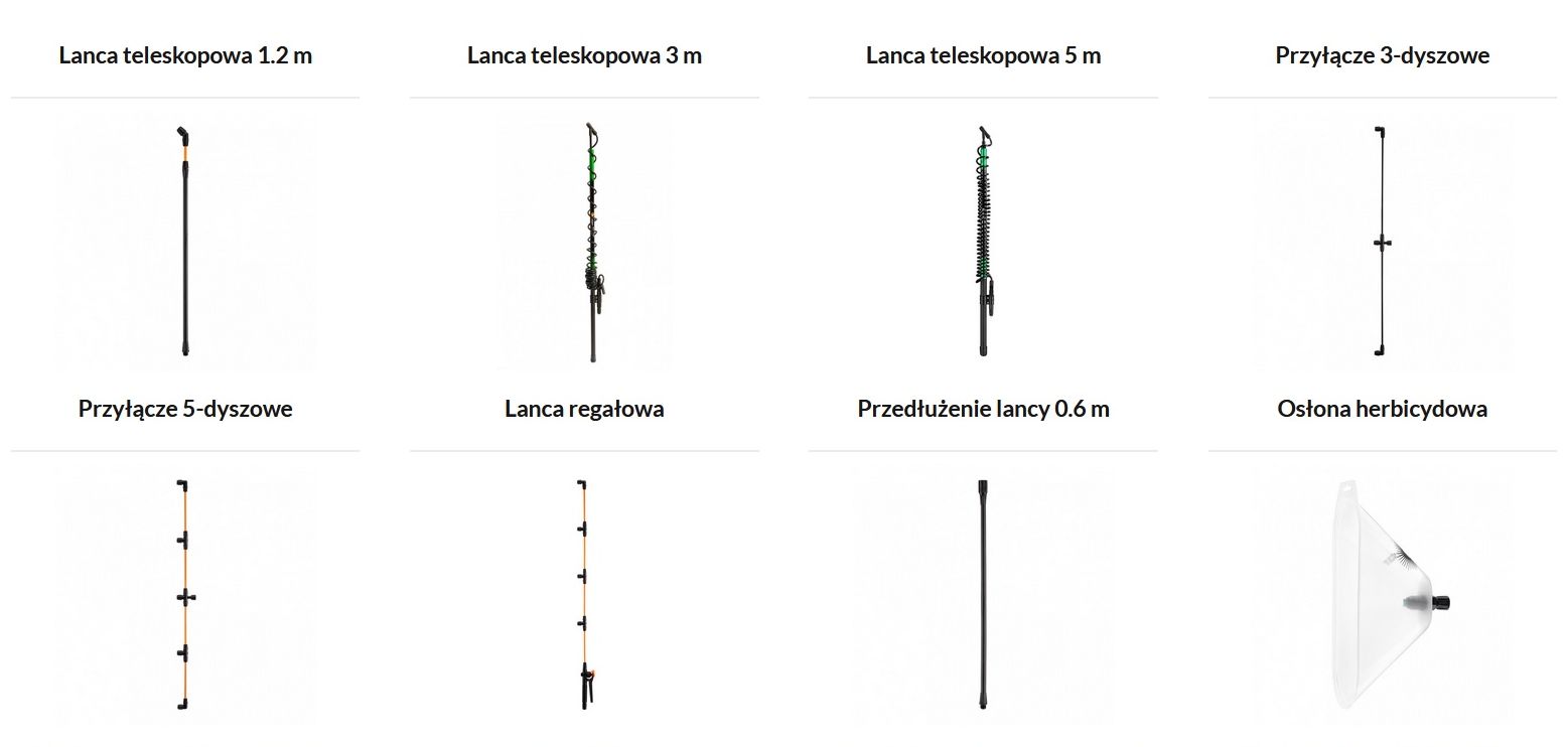 No właśnie. A po co tyle lanc i elementów wymiennych? Jak to po co? Przecież prace w ogrodzie są różne. Możesz opryskiwać drzewa i krzewy niskie lub wysokie, łatwo i trudno dostępne, elementy punktowe, jak i duże powierzchnie. I do tego właśnie służą poszczególne, wymienne elementy, które po pierwsze świadczą o wszechstronności i uniwersalności opryskiwacza, a po drugie podnoszą komfort pracy, czasem sprawiając wręcz, że bez odpowiedniej lancy, byłaby wręcz niewykonalna.