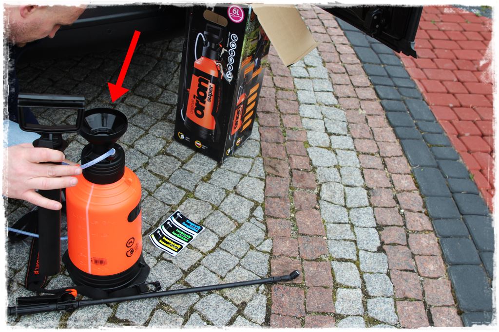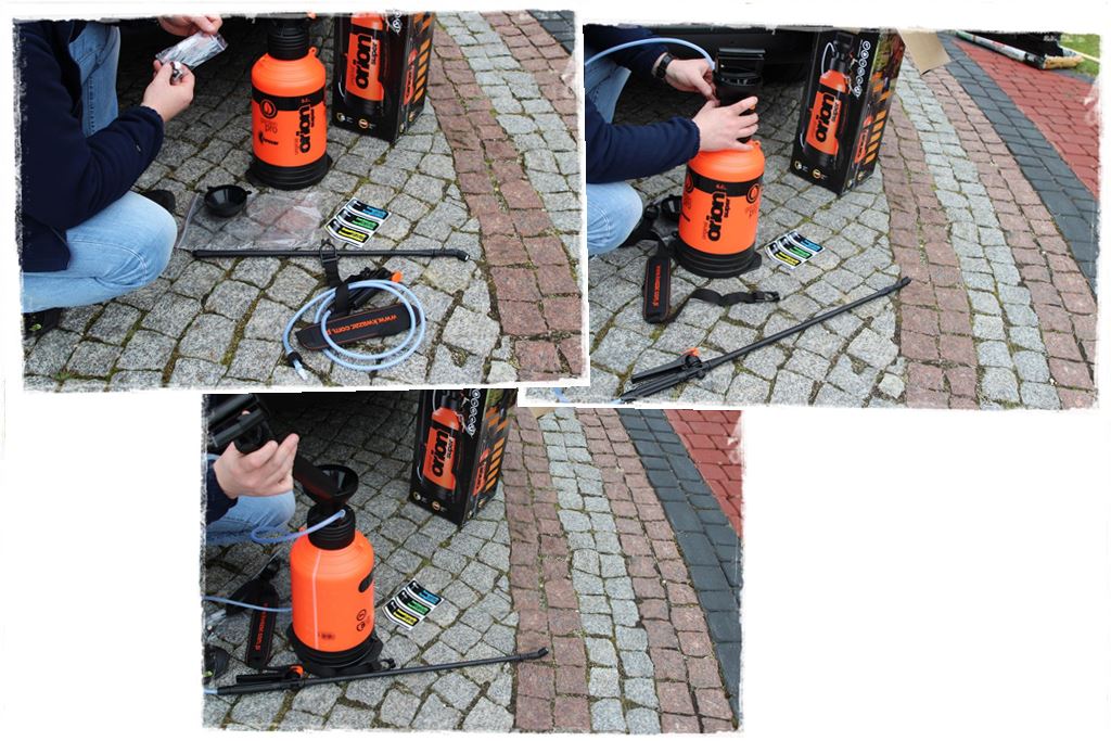 Opryskiwacz, jak każde tego typu urządzenie, po zakupie trzeba wyjąć z pudełka i zmontować. Ale spokojnie. Zmontować to nie znaczy nie wiadomo co, po prostu w kilku krokach, trzeba połączyć poszczególne elementy, innymi słowy przygotować go do pracy.
