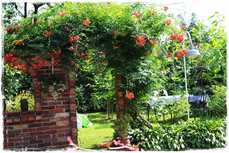 Pod warunkiem jednak, że jest pomysłowo wykonana i ciekawie wkomponowana w otoczenie. Podróżując po ogrodach, zarówno tych, w których pracuję, jak i tych, które odwiedzam w ramach projektu „Busem przez polskie ogrody”, a także licznych angielskich będących jak wiesz „kolebką ogrodów”, mam okazję podpatrywać szereg ciekawych rozwiązań i pomysłów. Również tych związanych z tematem, czyli „Pergola ogrodowa – praktyczna i efektowna ozdoba ogrodu”.
