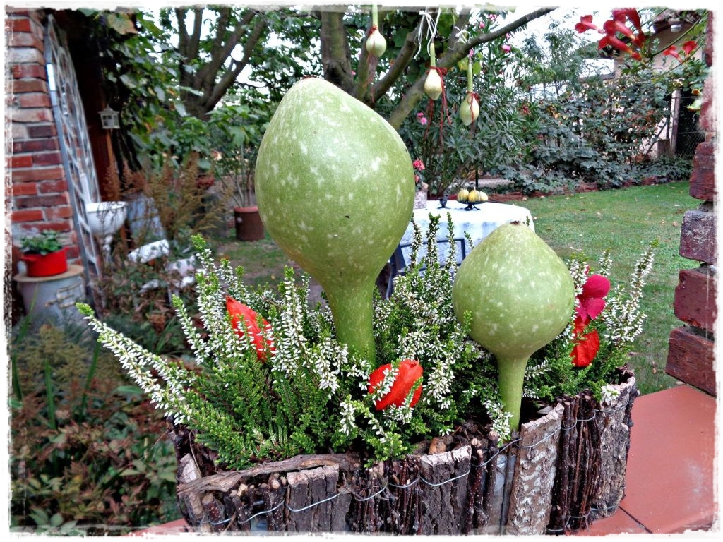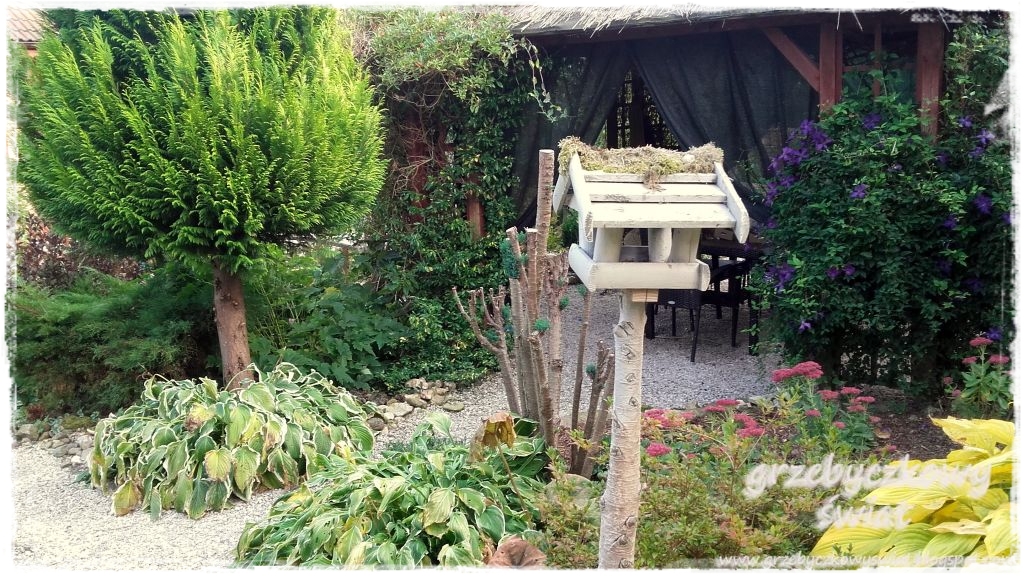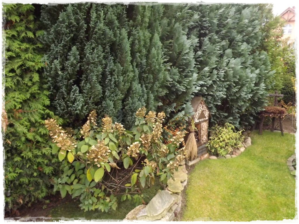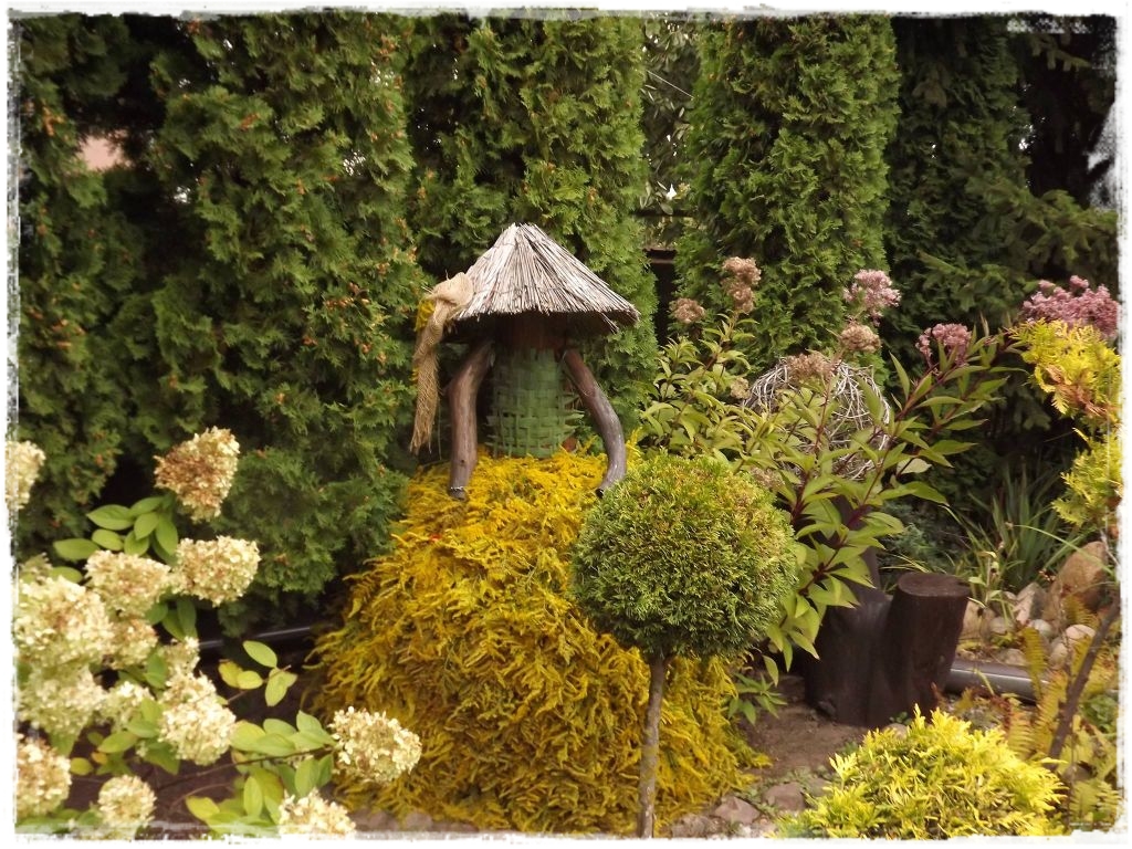 Ogród, który Właścicielka określa jako ogród „jak każdy inny”, ale z małym wyjątkiem. Osobiście się z tym nie zgodzę, bo jest on daleko z przodu przed tymi innymi, ale niech Jej będzie. Natomiast ten wyjątek to faktycznie coś niebywałego. Własnoręcznie robione dekoracje, w chyba dziesiątkach rodzajów. Wszystkie tylko i wyłącznie z naturalnych materiałów. I wszystkie wzbogacają ten niesamowity ogród. Nie ma kąta aby coś nie stało, coś nie wisiało czy leżało.