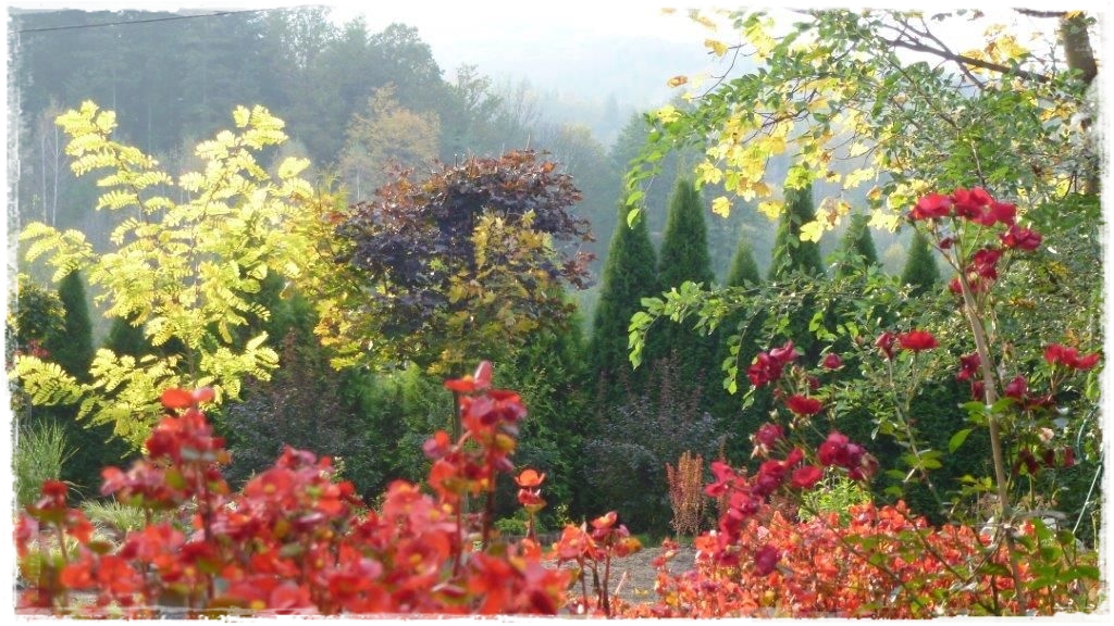 Co ważne i godne jeszcze podkreślenia to fakt, że wszystkie pokazane, piękne ogrody, to ogrody dorosłe, które od ładnych kilku lat są prowadzone. Oraz umiejętnie ubierane w określone gatunki roślin, które gwarantują tak spektakularne efekty. W tym także te jesienne. Oczywiście nic nie dzieje się samo lecz wymaga wiedzy, poświęcenia i zaangażowania ze strony ich Właścicielek. Którym z tego miejsca muszę złożyć moje słowa uznania.