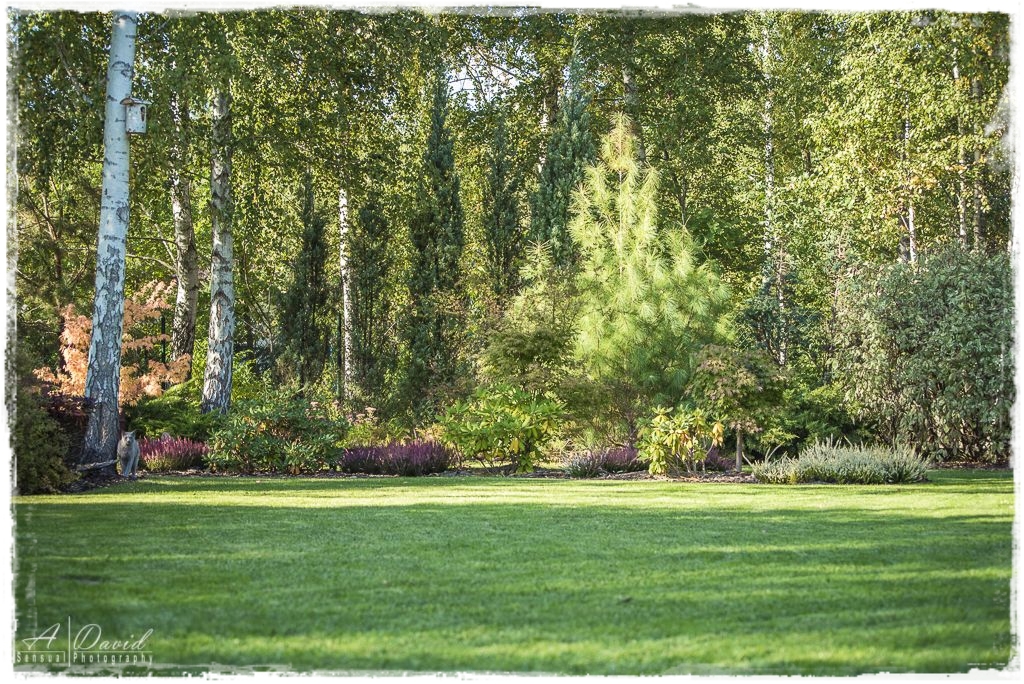 Kolejny wyjątkowo klimatyczny ogród i kolejny na tle pięknych drzew. Tym razem głównie brzóz. Wyjątkowo zadbany, stylowy, wyglądający jak piękna leśna polana. Lekko stonowany jeśli chodzi o kolorystykę, właściwie występują w nim prawie wyłącznie tylko wszelkie odcienie zieleni. No może trochę przesadziłem. Można nawet pokusić się o stwierdzenie, że to przeciwieństwo „Ogrodu pod lasem”, który aż kipi kolorami, oczywiście w dobrym tego słowa znaczeniu.