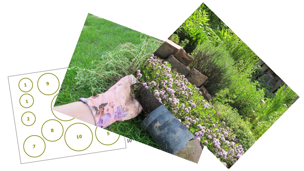 • Precyzyjny szkic rozmieszczenia ziół na aromatycznej rabacie,