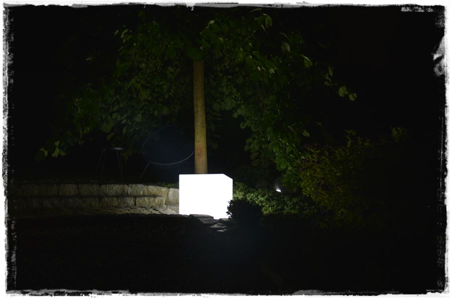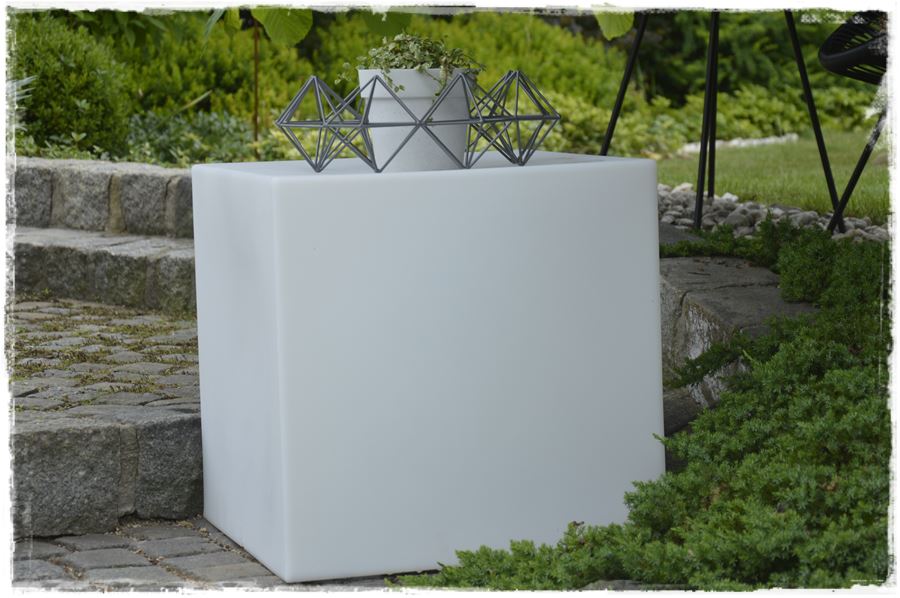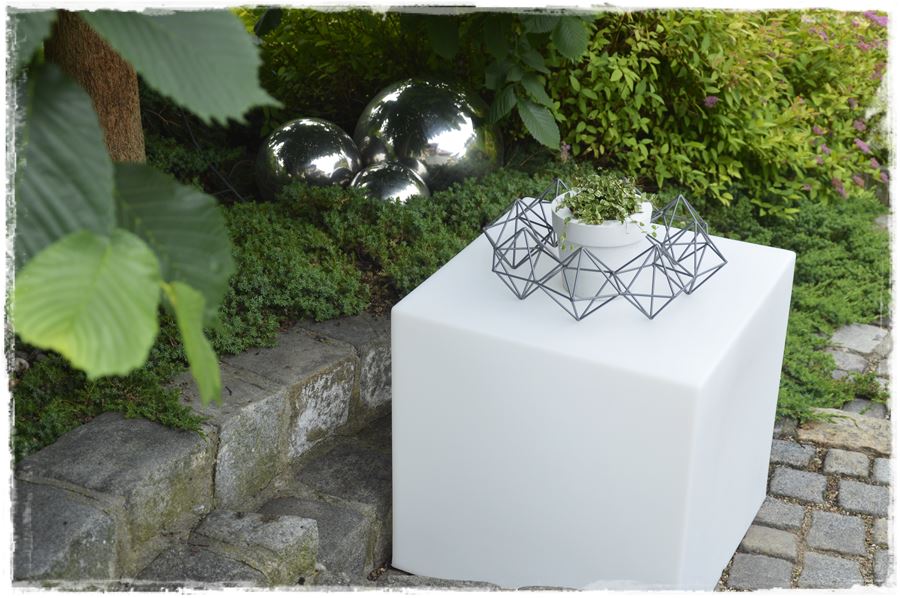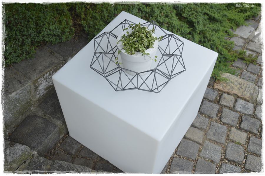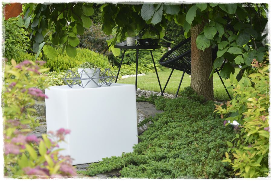 Można to oczywiście zrobić tradycyjnie za pomocą reflektorów, ale pomyślałam, że idealnie nada się do tego celu podświetlany stolik SQUARE, który znalazłam w ofercie sklepu internetowego Modne donice.