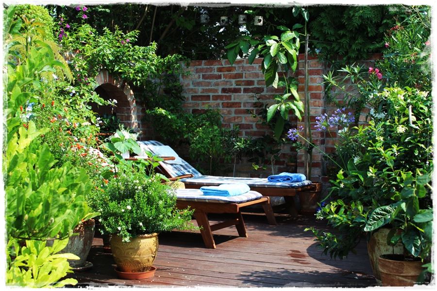 Przede wszystkim musi to być w jakiś sposób wydzielona przestrzeń. Jeśli nie może to być cały ogród, to przynajmniej jakaś jego część. Najlepiej jakiś wydzielony zakątek, gdzieś w zaciszu ogrodu, osłonięty budynkiem, wyższym piętrem roślin, czy po prostu otoczony rabatami.