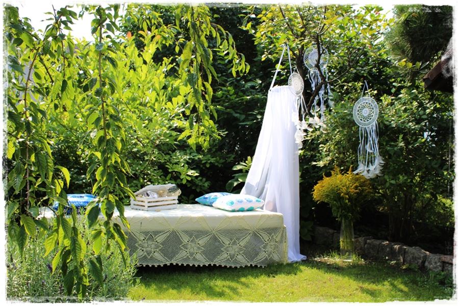Jako ciekawostkę wspomnę również o romantycznym nakryciu stołu, czyli takim dopełnieniu romantycznego kącika w ogrodzie.