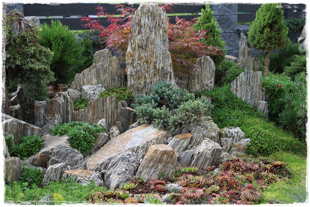 Powyższe ujęcia pokazują również wyjątkową precyzję, z jaką zostało to wykonane. Ale efekty są adekwatne do nakładów pracy. Powstał taki mały górski krajobraz, który w przypadku tego ogrodu, o którym więcej w tym poście, jest ozdobą przedogródka i zapowiedzą tego, czego można spodziewać się w dalszej części.