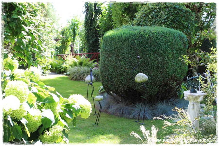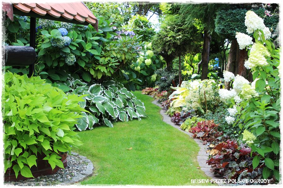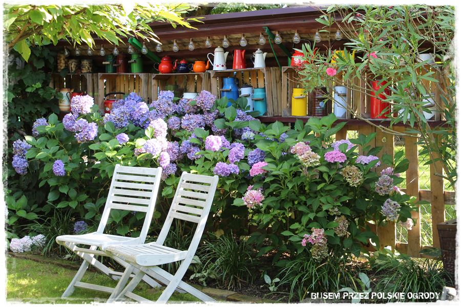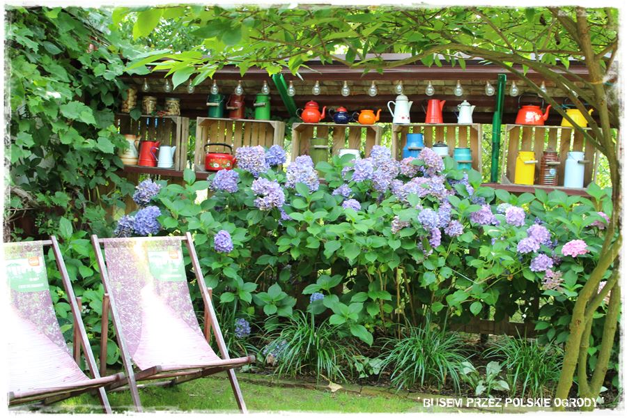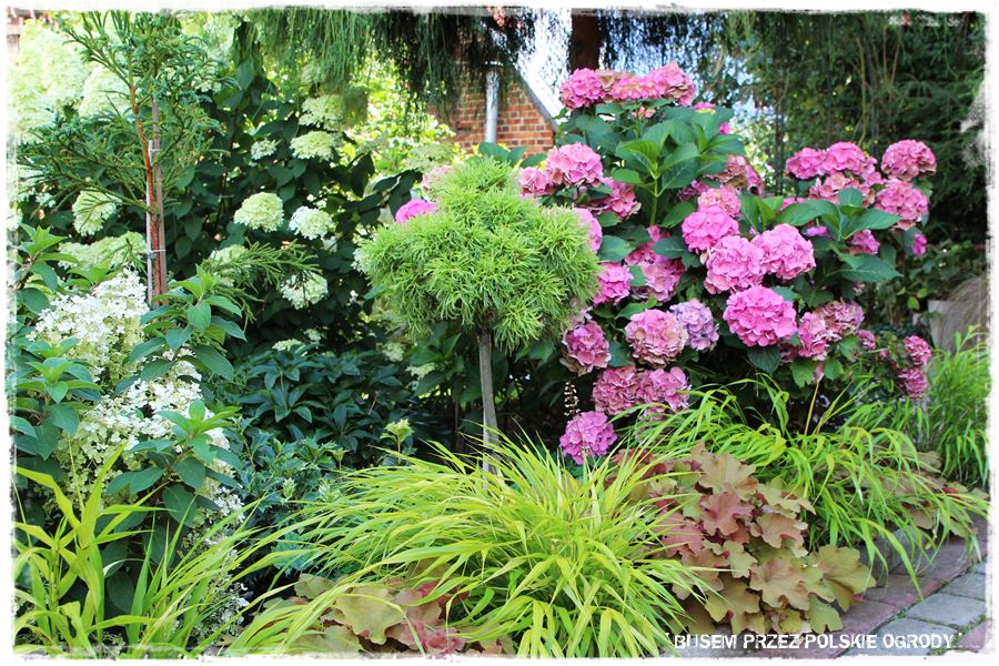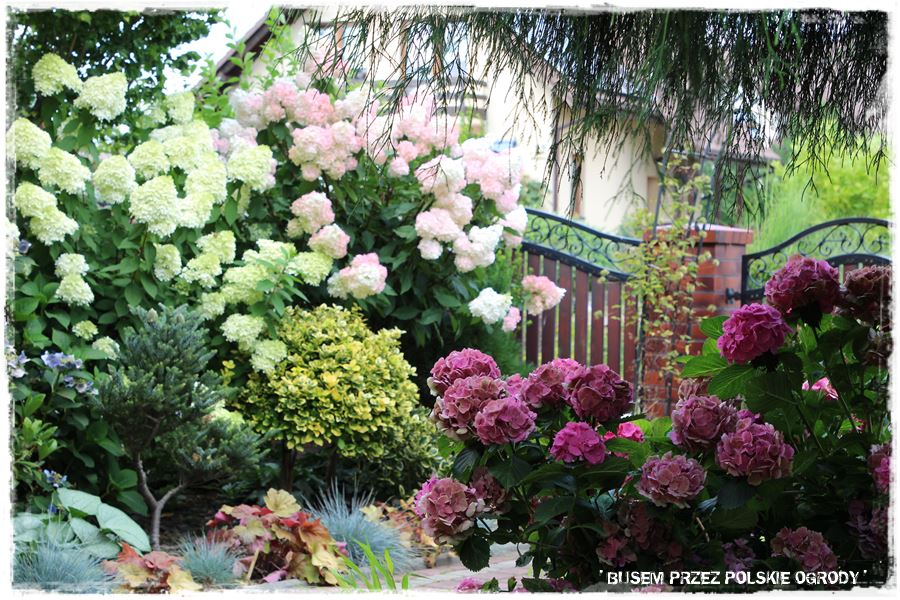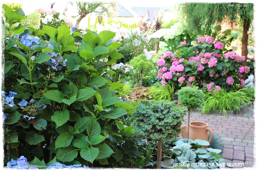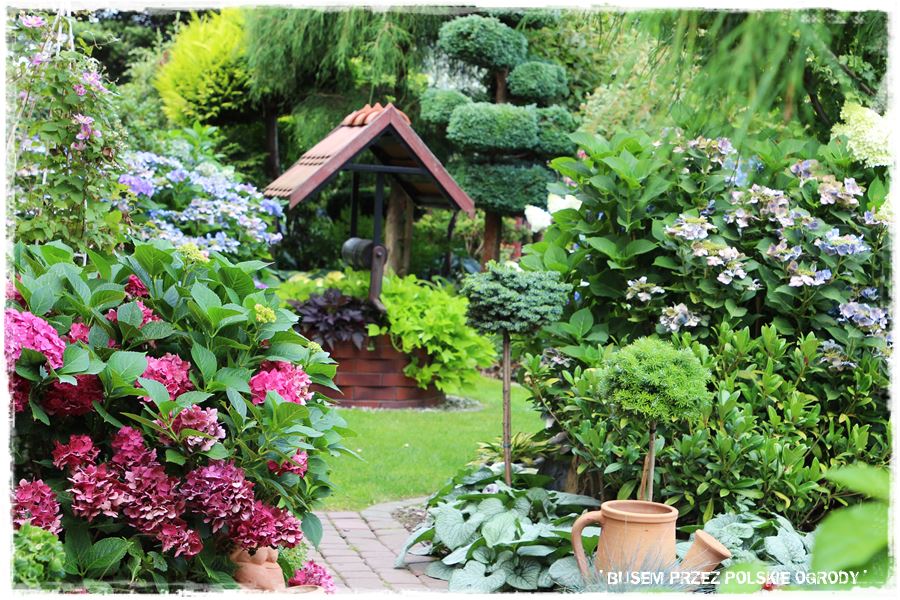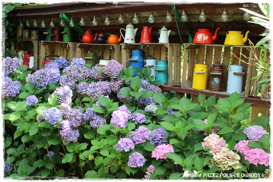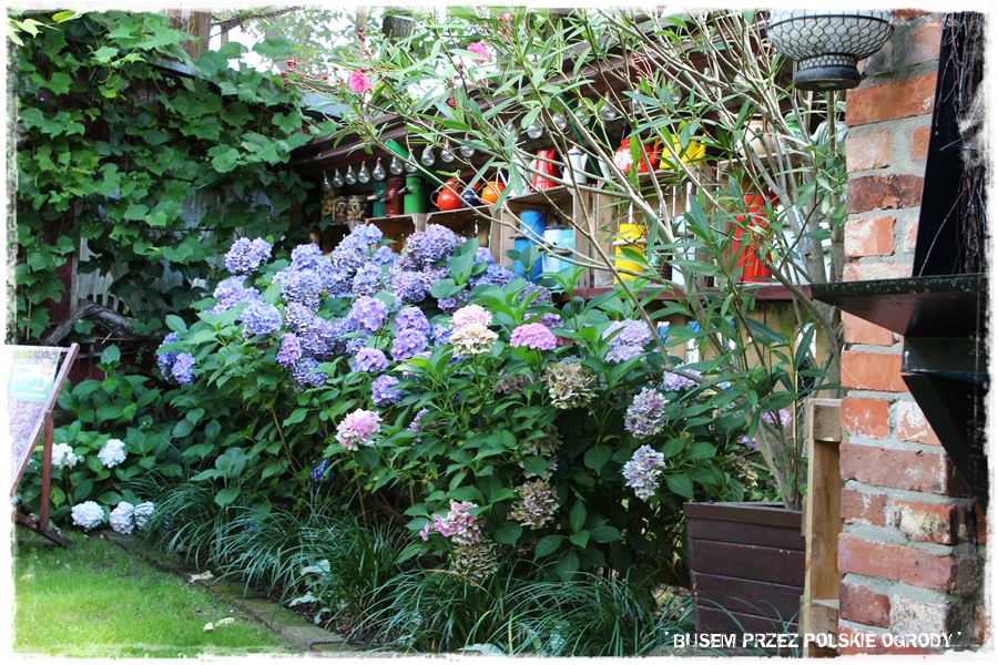 Jak widziałeś na zdjęciach, w ogrodzie tym nie można się nudzić. Na każdym kroku jest coś, co przyciąga nie tylko wzrok, ale jest również atrakcją i zachętą do przebywania w tym miejscu. Jednak prawdziwy zachwyt wzbudzają przepiękne nasadzenia, w szczególności tak efektowne teraz hortensje. To tak duże bogactwo kolorów i odmian, którym można byłoby obdzielić kilka innych ogrodów.