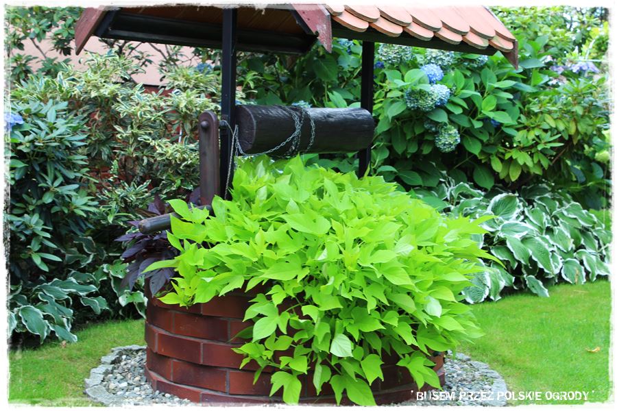 Aranżując ogród warto również być konsekwentnym i trzymać się obranego kierunku. Tak jak w tym przypadku, gdzie powstał typowy ogród swobodny, gdzie można spotkać liczne stare elementy, wszystko jest luźne, jakby trochę „z innej bajki”, a zarazem pięknie tworzy całość,