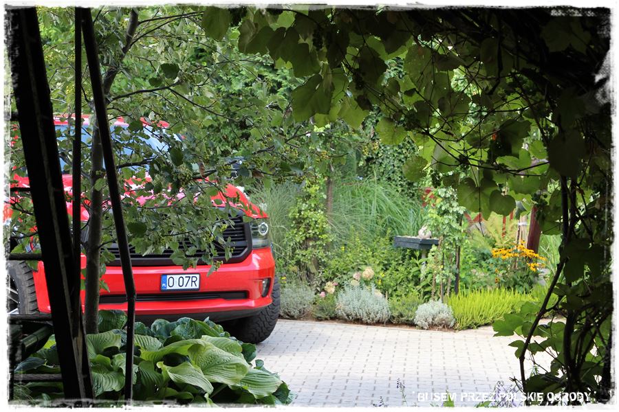 Wracając do wizyty, jak zawsze, bus zaparkował w ogrodzie, a ja miałem możliwość przywitać się z Gospodynią tego terenu – Grażyną. Jeśli czytasz uważnie wszystkie relacje, zauważyłeś pewnie, że to pewnego rodzaju schemat, który staram się powielać. Z drugiej strony trudno sobie wyobrazić, aby ten charakterystyczny bus do ogrodu nie wjechał, a ja nie przywitał się z gospodarzami. Tym bardziej, że mam szczęście trafiać na wyjątkowo miłe, otwarte i gościnne osoby, co miało miejsce również w tym przypadku.