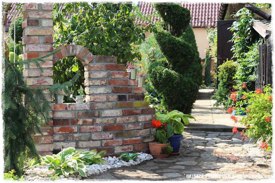Spójrz więc na garść inspiracji, które przywiozłem busem z ogrodów, które odwiedzam w ramach projektu „Busem przez polskie ogrody”. Możesz mi wierzyć, że to bezcenna skarbnic pomysłów, którymi dzielą się ze mną niezwykle mili i kreatywni ludzie. Myślę również, że to jedyna w swoim rodzaju okazja aby podpatrzeć coś, do czego w normalnych okolicznościach nigdy nie byłoby dostępu. A już szczególnie nie byłoby możliwości, aby w jednym miejscu zebrać tyle pomysłów i rozwiązań, jakie daje zastosowanie starej cegły w ogrodzie.