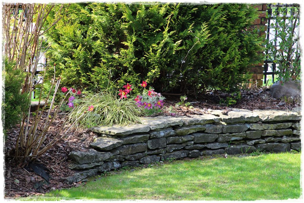 Z kolei na płaskiej działce efektownym, trwałym i wygodnym rozwiązaniem jest wolno stojąca podwyższona rabata otoczona suchym murkiem. Można ją porównać do rodzaju dużej, kamiennej skrzyni na rośliny ozdobne lub warzywa.