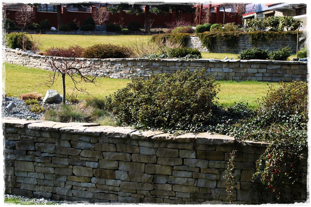 Ścianka zbudowana z kamieni łączonych bez zaprawy najczęściej pełni funkcję murka oporowego. Umacnia i podtrzymuje skarpę, pozwalając skrócić jej stok i zyskać kawałek dodatkowej przestrzeni. W ten sposób można łatwo zniwelować niewielkie różnice wysokości na działce. Jest jedno ale: ze względu na specyfikę ich konstrukcji wysokość suchych murków jest ograniczona i generalnie nie powinna przekraczać 100 cm. Da się to jednak obejść poprzez tzw. tarasowanie stoku. Budując kilka suchych murków oporowych z pewnym przesunięciem, jeden nad drugim, można podzielić trudny do zagospodarowania, rozległy, pochyły teren na kilka płaskich tarasów.