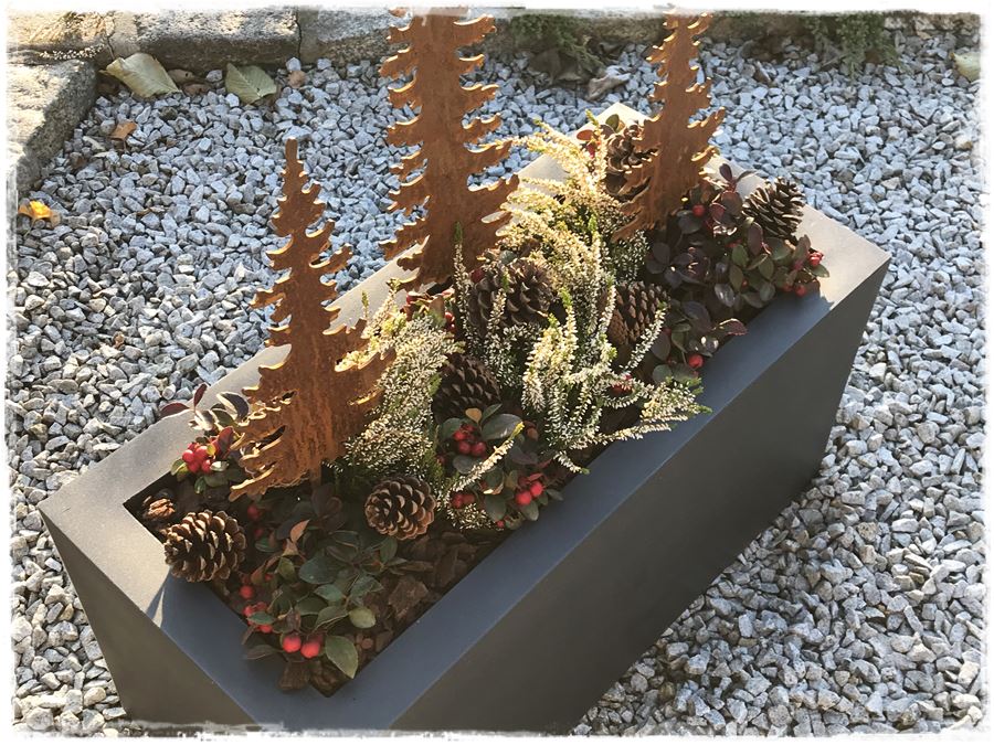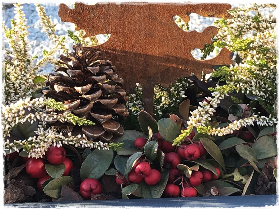 W oczekiwaniu na te najpiękniejsze i najradośniejsze Święta w roku, postanowiłam umilić sobie widok za oknem, na mój nieco smutny o tej porze ogród. Tym bardziej, że większość kompozycji w donicach znajdujących się w moim ogrodzie, została już zabezpieczona na zimę. Postanowiłam jednak wbrew porze roku, stworzyć jeszcze jedną, ale już w bardzo zimowej, a wręcz świątecznej aranżacji.