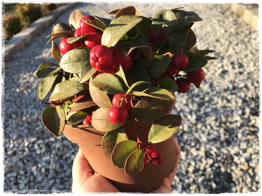 To wspaniała zimozielona niska krzewinka, która wśród błyszczących, skórzastych liści obsypana jest cudownymi, okrągłymi, czerwonymi jagodami, wyglądającymi niczym małe bombeczki. Właśnie te czerwone kuliste owoce od razu przywołują skojarzenie ze Świętami Bożego Narodzenia. Owoce te pojawiające się już pod koniec lata i utrzymują się na pędach przez całą zimę aż do wiosny!