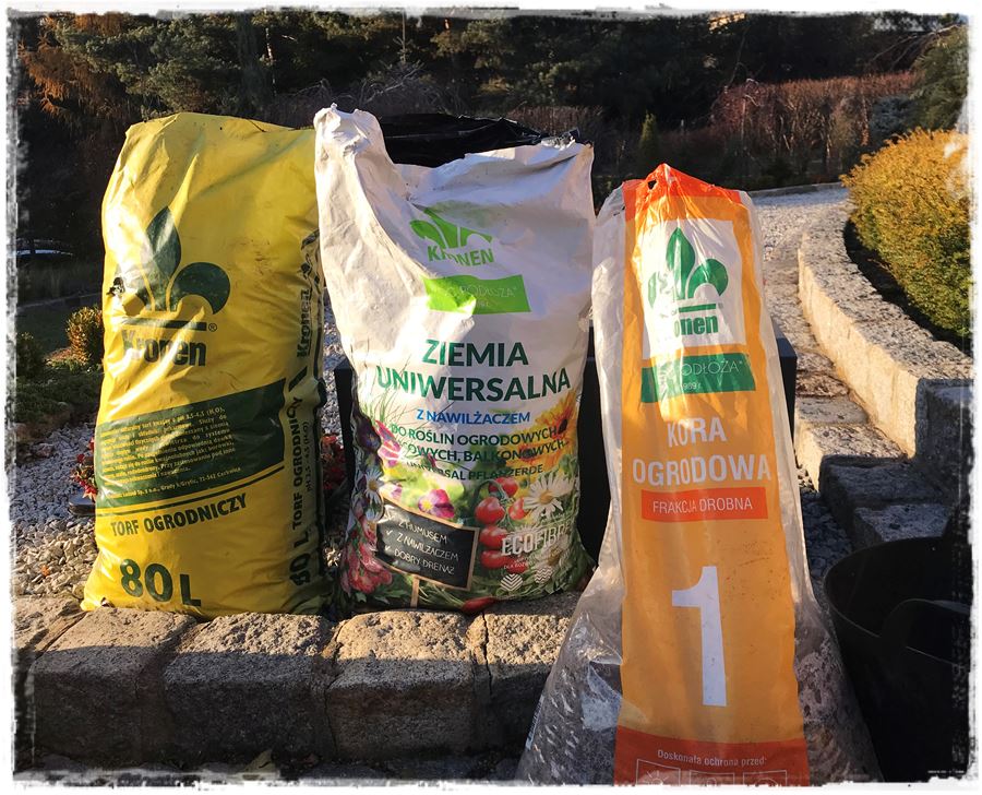 Bardzo ważnym elementem oprócz samych roślin jest to czego nie widać, czyli wybór odpowiedniej ziemi. W centrach ogrodniczych i marketach jest ich duży wybór. Kupując jednak ziemię do donic zwróć szczególną uwagę na jej jakość. Ziemia ziemi nierówna. I tu nie chodzi o jej przeznaczenie, ale o skład i proporcje różnych zawartych w niej komponentów. Dla mnie absolutnie numerem 1 jest ziemia ogrodnicza marki KRONEN. Stosuję ją od dawna nie tylko do donic, ale w całym ogrodzie do roślin kwitnących oraz iglaków, a także do rozsad, ziół, borówek amerykańskich, a ponadto do roślin domowych w donicach i tworzonych przeze mnie kompozycji w szklanych naczyniach (tzw. leśnych słoji). Dlatego i tym razem również zaufałam tej marce,