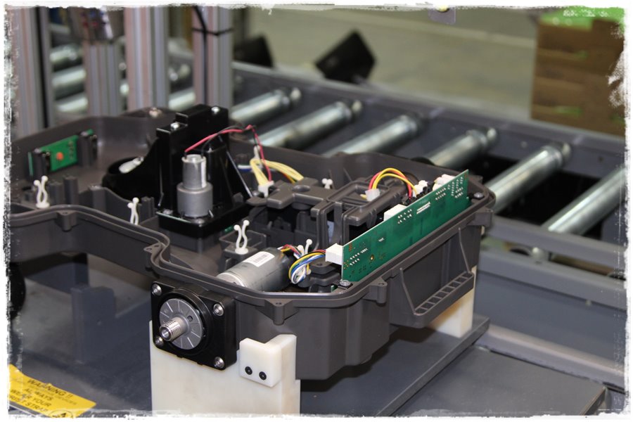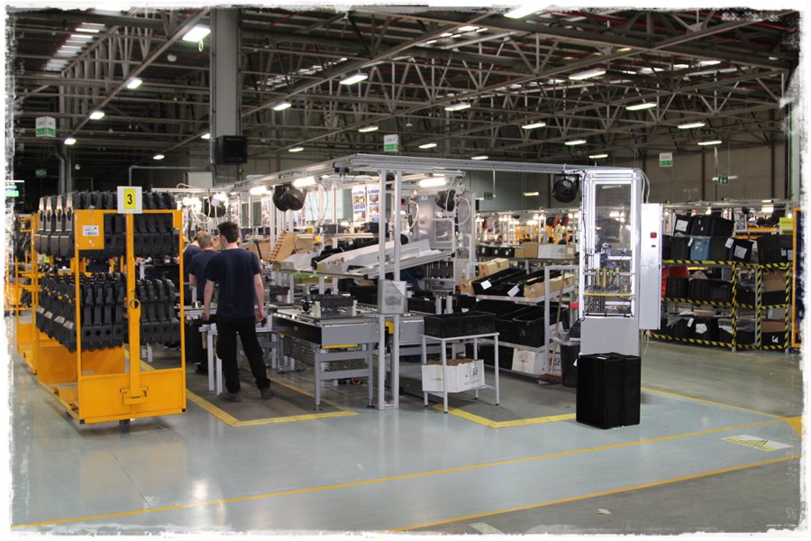 I to tyle w skrócie, a teraz spójrz na linię produkcyjną. Kolejno od magazynów z komponentami, poprzez taśmy produkcyjne, aż po stanowiska montażu elektroniki i gotowe produkty w kartonach.