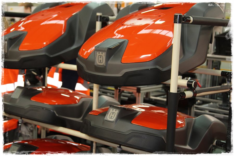 Fabryka, do której zostaliśmy zaproszeni, to oczywiście jedna z wielu fabryk Marki Husqvarna na Świecie. Natomiast to w niej pracuje się nad nowymi technologiami oraz produkuje tzw. roboty koszące. Poświęcę im oczywiście osobny wpis, w tym miejscu pokażę Ci jedynie miejsce ich produkcji. Jakby nie było to także ważne, a ponadto unikatowe doświadczenie, aby móc zajrzeć na hale produkcyjne.