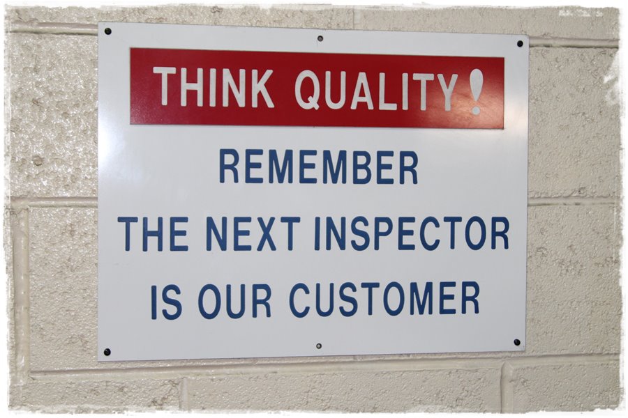 Co w wolnym tłumaczeniu oznacza: Pomyśl o jakości! Pamiętaj, następny naszym inspektorem jest nasz klient.