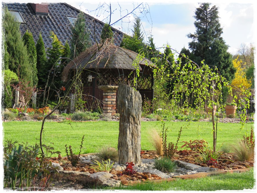 Mój ogród tworzę już od 10 lat.jest to moja pasja, której poświęcam wiele czasu- o on mi się odwdzięcza swoim pięknem. Non stop coś poprawiam, robie nowe nasadzenia.szukam nowych inspuracji i wykorzystuje je w swoim ogrodzie.Uwielbiam kamień( w każdej postaci)mam tu już piaskowce,kamień rzeczny i moje ukochane otoczaki. Gnejsu jeszcze nie mam, ale już mam wizję na niego…. planuje taras z kostki przed domem, a w nim dwie “łezki” w których będą berberysy w różnych kolorach.i już tam widze szpilki gnejsowe ?