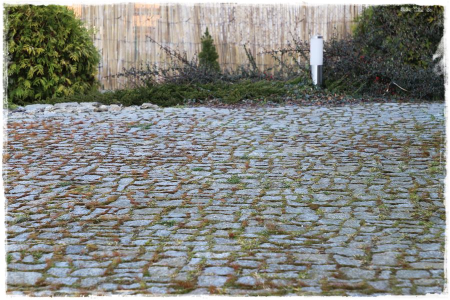 Zanim przejdziemy dalej spójrz na ujęcia z mojego ogrodu, konkretnie chodniki i taras przy budynku, które zostawione samym sobie od zeszłego (miałem wyjazdowy rok i nie miałem czasu na ogród), są jednym wielkim problemem. Chodniki znajdują się od strony wschodniej i zachodniej, stąd jak widzisz upodobał je sobie różnego rodzaju chwast.