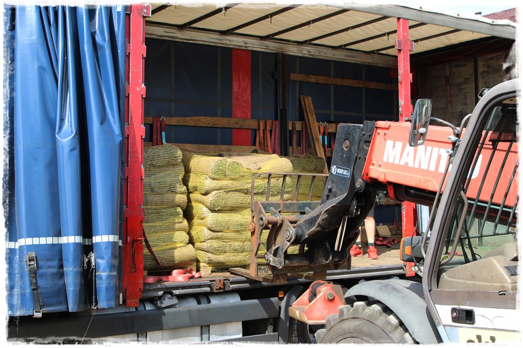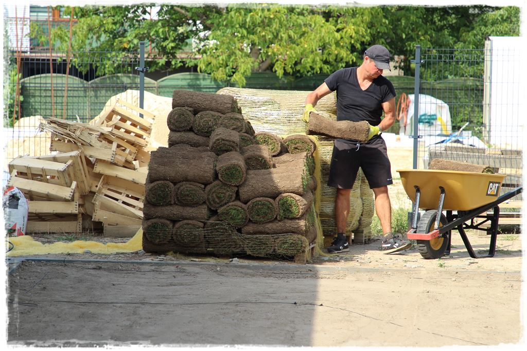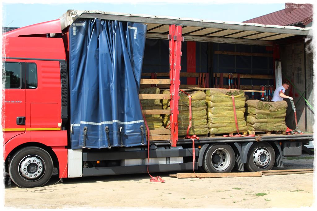 Trawa na plantacji była ścięta dzień wcześniej, a zatem w dniu dostawy musiała być ułożona. Tym bardziej, że pracowaliśmy w środku sierpnia, w dość wysokich temperaturach. W każdym razie materiał przyjechał w doskonałej kondycji, przypomnę, że z plantacji i nasion Rolimpex. Został rozpakowany i był gotowy do ułożenia.