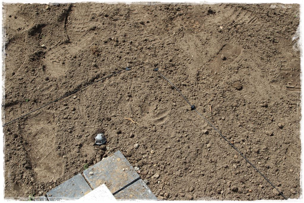 Mając przygotowany teren, mimo że żal było go deptać, ale trzeba było wejść i rozciągnąć przewody ograniczające i doprowadzające dla robotów koszących. Nie będę tego tutaj szczegółowo omawiał, jako że zrobię to dokładnie w jednym z kolejnych postów tego cyklu, gdzie przedstawię cały Gardena Smart System.