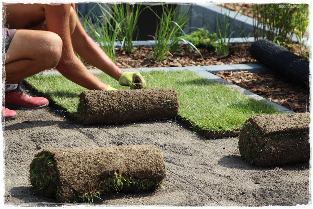 a na niej układna, rolka za rolką, trawa.