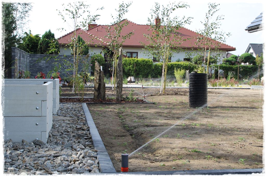 Tymczasem w tym poście, aby porządkowi i chronologii wydarzeń stało się zadość, przedstawię to, co realizujemy w temacie pt. trawnik z rolki oraz uruchomienie zraszaczy na pełen etat.