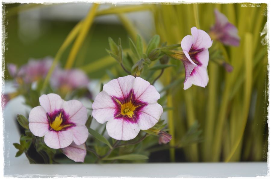 - Surfinia „Milion Bells” zwisająca po jednej stronie,