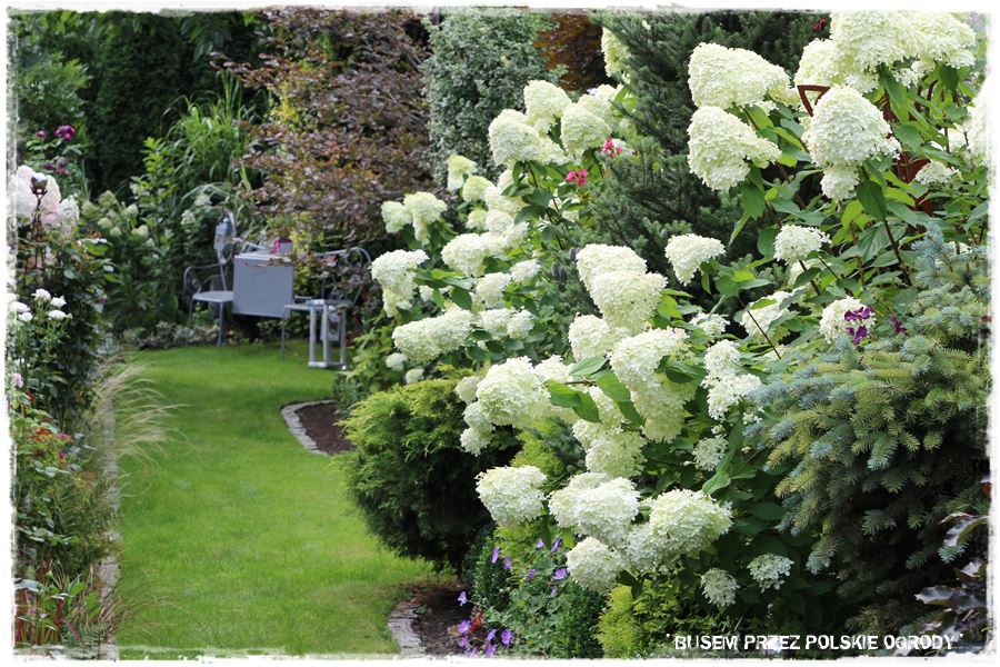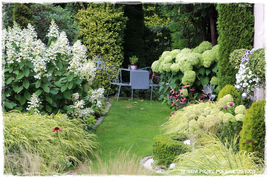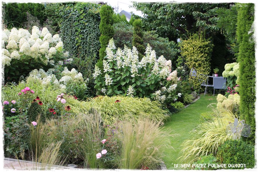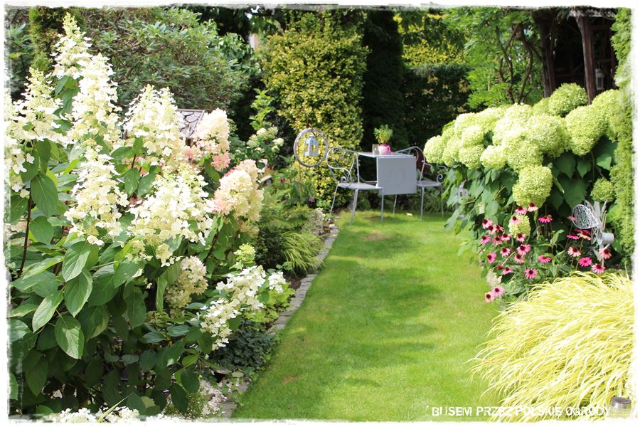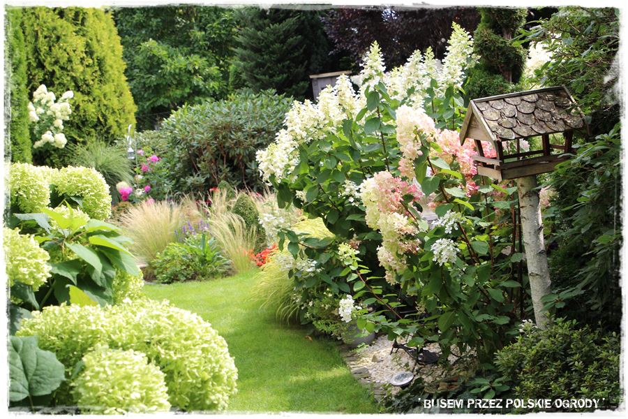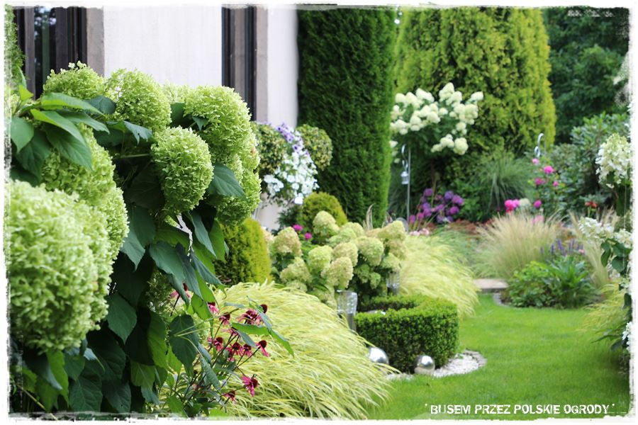 Poza tym, pokazany ogród to kolejny przykład na to, że pomysłowość ludzka nie zna granic. Że możliwe jest tworzenie efektownych ogrodów, które wyglądają ciekawie przez cały rok, a szczególnie teraz, ozdobione kwitnącymi hortensjami. Ciekawe jest również to, że ogród ten ma podwójne oblicze – z jednej strony uporządkowany i regularny, z drugiej prawie naturalistyczny.