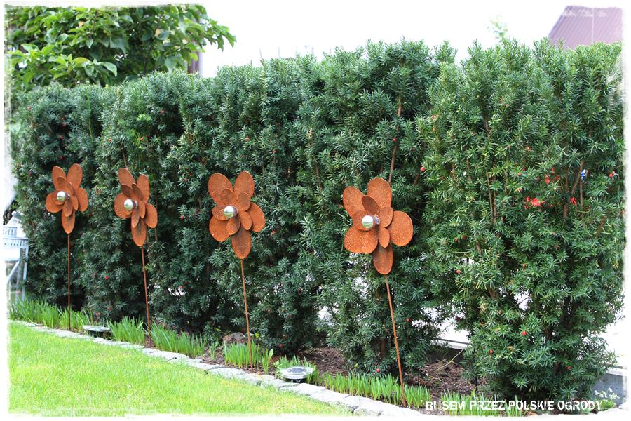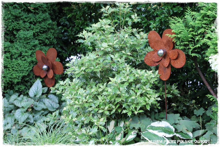 Ten uporządkowany ogród, to jednak nie są tylko rośliny. Owszem, te są wyjątkowe, ale kroku dotrzymują im również dekoracje. Przeróżne, które w większości sprowadzają się do wspólnego mianownika: własnoręcznie wykonuje je Krzysztof.