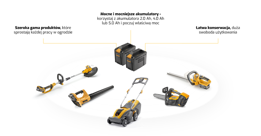 I właśnie ten ostatni punkt jest szczególnie istotny, ponieważ pozwala skompletować sobie całą paletę urządzeń, które naprzemiennie można zasilać jednym lub dwoma akumulatorami.