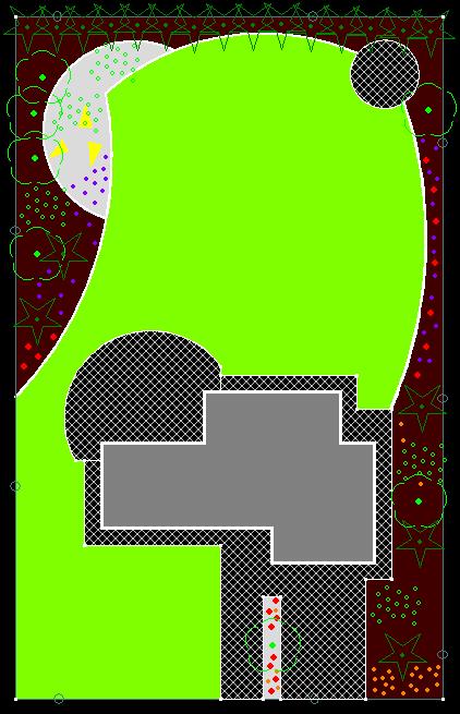 Mając te elementy, możemy wstępnie uznać, że na naszej modelowej działce zakończyły się „ciężkie” prace budowlane. Tym samym zagospodarowaliśmy kolejne 104m2 chodnikami i podjazdami oraz 51m2 zajął wybudowany taras.