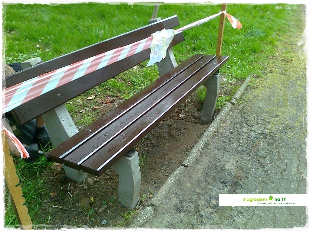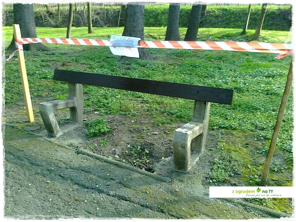 Ale szczytem szczytów są sytuacje kiedy znikają zabezpieczenia, a ławki same „wykopują” się z podłoża. Być może to farba tak działa? Trzeba to będzie jeszcze zaobserwować.