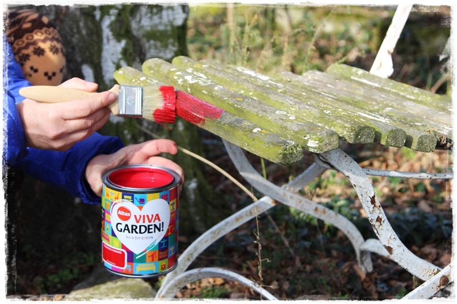 Aby spełnić oba warunki, musisz szukać farb odpowiednich. Ze swej strony polecam Ci produkty Altax Viva Garden, który jak wiesz, jest moim Partnerem w projekcie „Busem przez polskie ogrody”. Jednak nie robię tego z tego względu. Ale dlatego, że sam osobiście je wypróbowałem, używając ich do malowania różnych elementów.