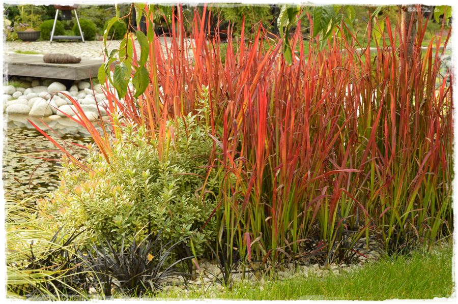 Bardzo widowiskowo prezentuje się w kompozycjach jesiennych np. Imperata cylindrica odmiany „Red Baron”. Trawa ta wygląda jakby płonęła, osiąga wysokość ok. 30 centymetrów, nie ma szczególnych wymagań co do podłoża. Lubi miejsca słoneczne, jest dość ekspansywna, bowiem rozmnaża się poprzez rozłogi.