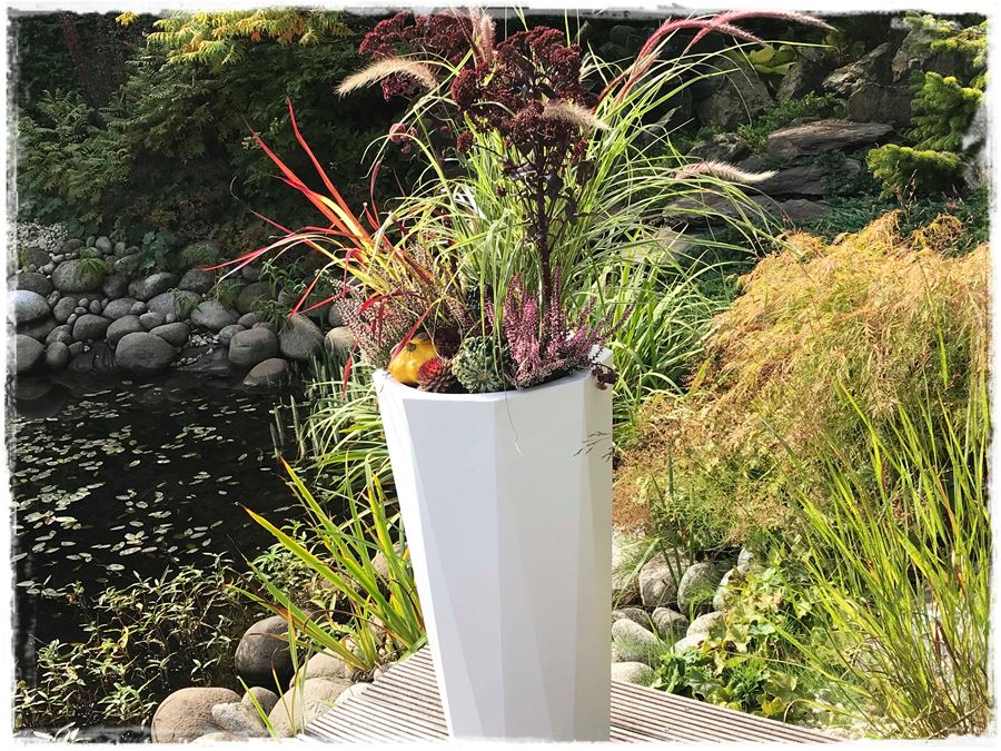 Wracając do tematu, do wykonania tegorocznej jesiennej kompozycji w donicy wybrałam bardzo oryginalną donicę Octavia o geometrycznym kształcie,która urzekła mnie swoim kształtem.