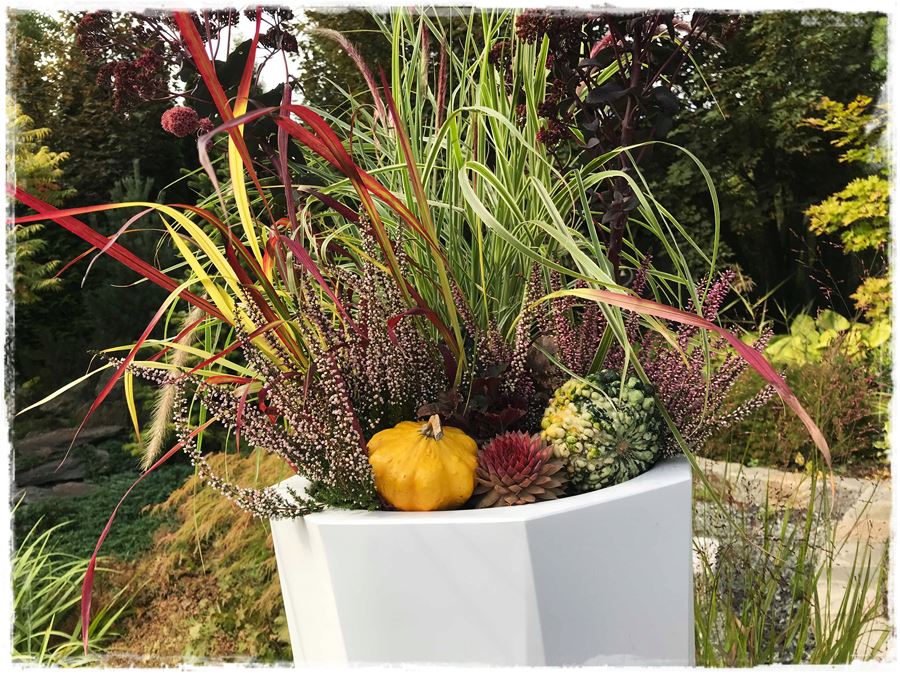 Wierz mi, że dzięki pokazanym ozdobnym trawom i bylinom o kolorowych liściach wrześniowe kompozycje w donicach będą atrakcyjne aż do pierwszych śniegów.