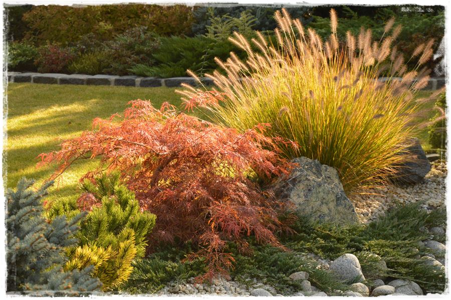 Do moich ulubionych należą swobodne zestawienia roślin o ciekawych kwiatach, liściach oraz niezwykłym pokroju. W jesiennych kompozycjach dominują przede wszystkim trawy ozdobne, które zadziwiają bogactwem form i kolorów.