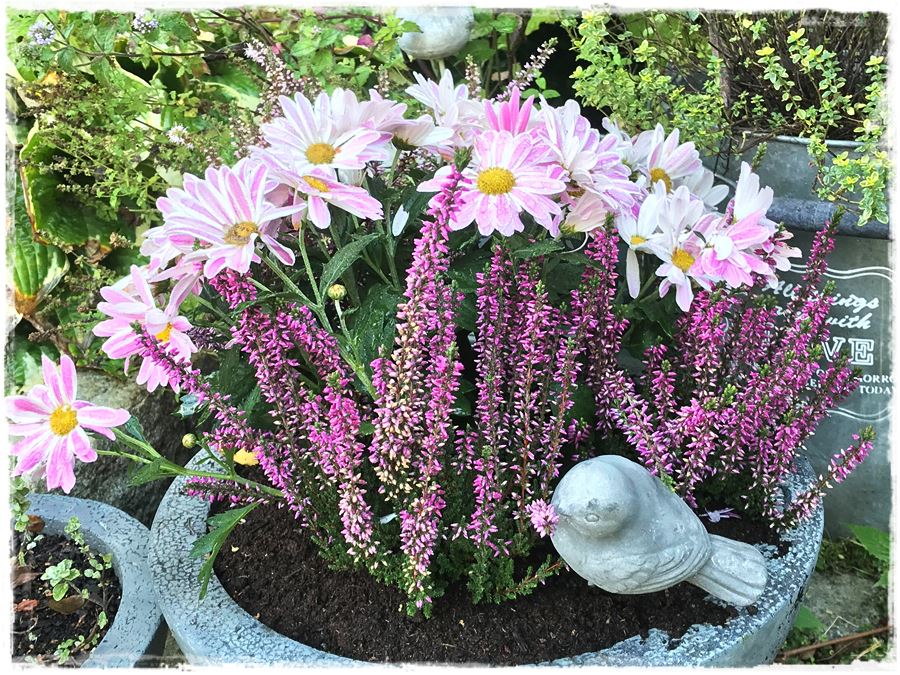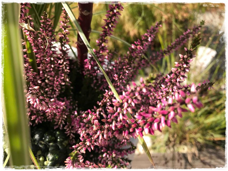 Doskonałym uzupełnieniem dla nich będą również niższe wrzosy, o jaśniejszych odcieniach różu lub fioletu, których słodki zapach unosi się w powietrzu w cieplejsze jesienne dni.