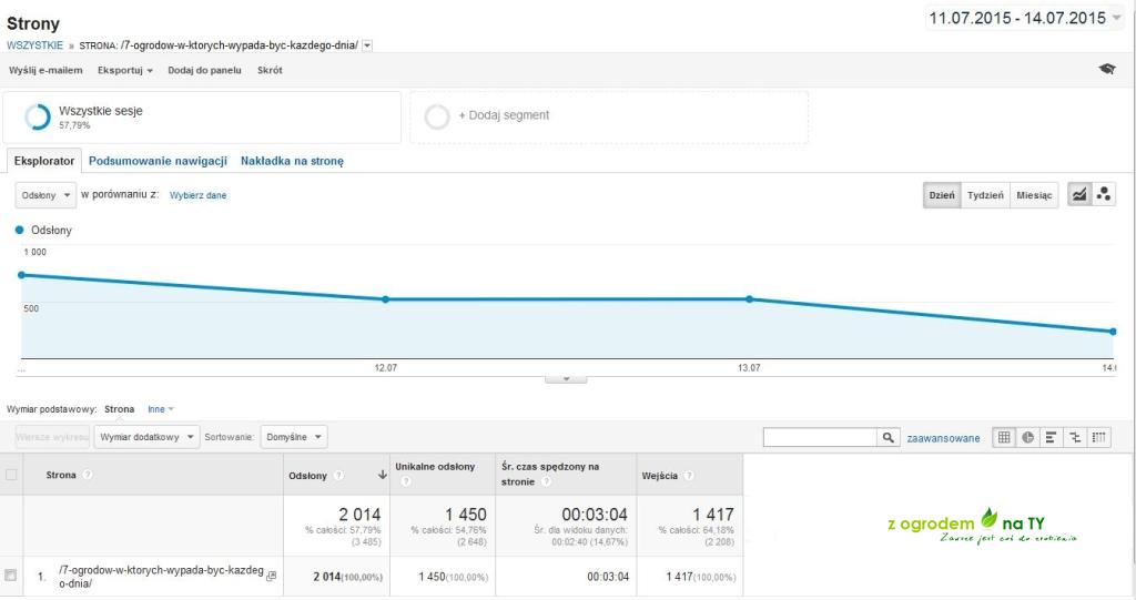 Nie inaczej więc było w przypadku wpisu 7 ogrodów, w których wypada być każdego dnia. Dlatego to, co pokazują zamieszczone statystyki to jest to, co wydarzyło się w pierwszych czterech dniach po opublikowaniu informacji o wpisie, na moim profilu na facebook’u. Kolejne dni to już niewielka, pojedyncza zmiana w statystykach.